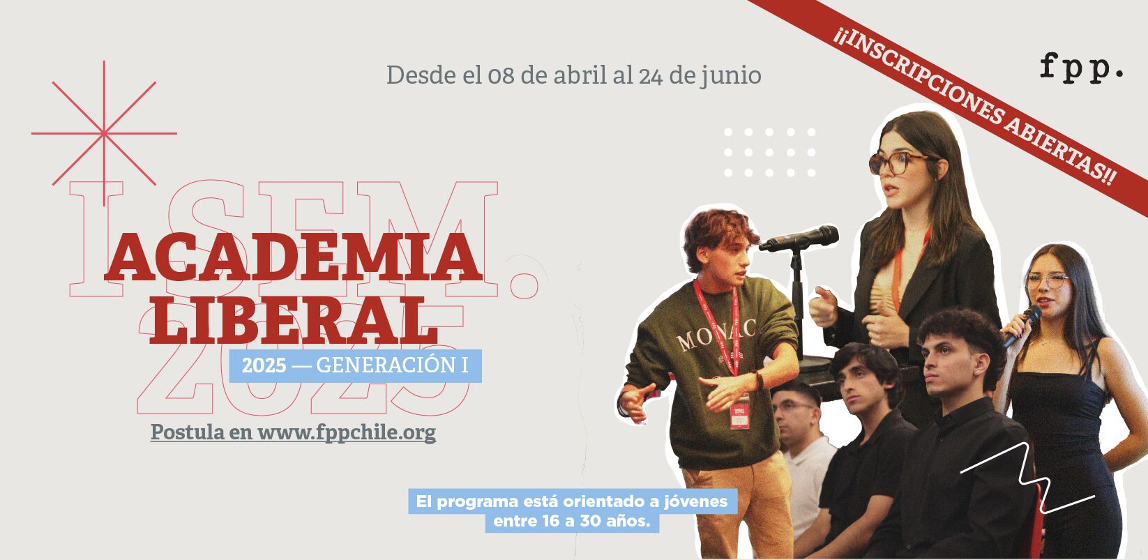 La Academia Liberal FPP es un programa formativo de la Fundación para el Progreso que convoca a jóvenes de entre 16 y 30 años de todo Chile y Latinoamérica, para entregarles, durante un semestre, las herramientas necesarias para potenciar su pensamiento crítico, acceder al conocimiento de historia de las ideas, mejorar la resolución de conflictos y obtener habilidades comunicacionales y de liderazgo.