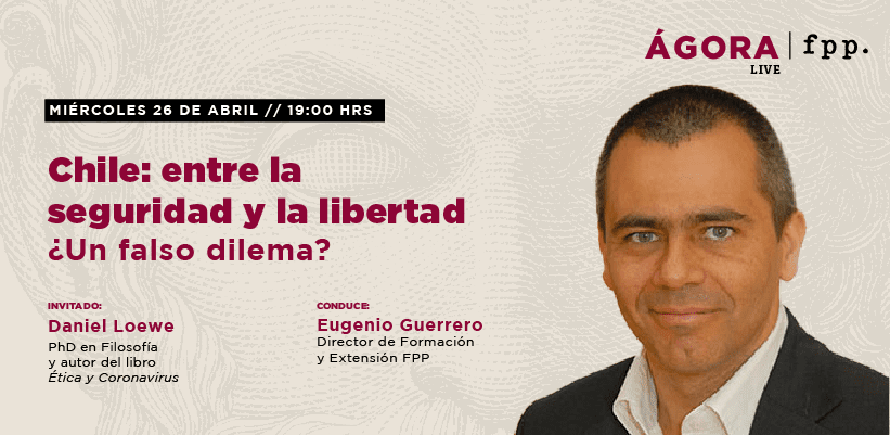 La relación entre seguridad, libertad y orden institucional, las tendencias ciudadanas y políticas emergentes en el actual contexto de la crisis de seguridad, la incipiente tendencia a priorizar la seguridad por sobre la libertad, como también la demanda (y oferta política) por un liderazgo similar al de Nayib Bukele en Chile y sus implicancias, serán algunos de los temas que abrirán la conversación en un nuevo Ágora Live, el próximo miércoles 26 de abril, junto a Daniel Loewe, PhD en Filosofía y autor del libro Ética y Coronavirus, y Eugenio Guerrero, director de Formación y Extensión FPP.