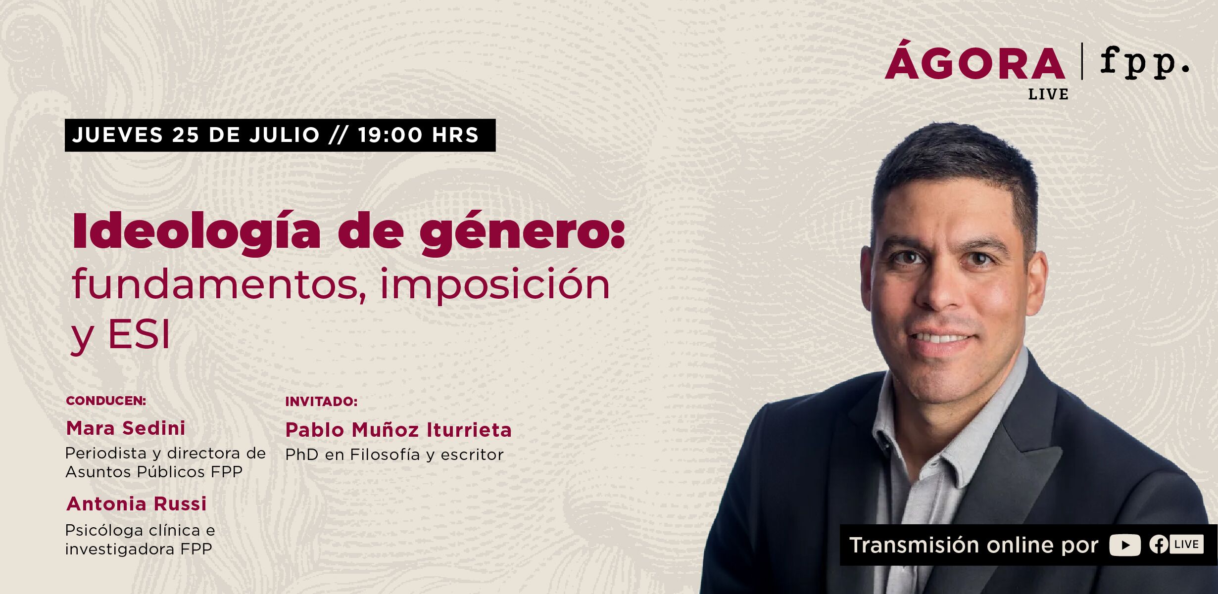 Fundación para el Progreso te invita a una nueva sesión del Ágora Live en el que conversaremos en profundidad sobre el significado e implicancias de la ideología de género, sus orígenes y características, los modos en que se presentan actualmente y su vínculo con la Educación Sexual Integral. En esta oportunidad contaremos con el filósofo, escritor y líder de opinión Pablo Muñoz Iturrieta.