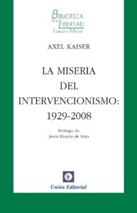Axel Kaiser es autor de varios libros entre los que se encuentra "La miseria del intervencionismo: 1929 - 2008". En esta publicación Kaiser explica cómo la manipulación de las tasas de interés realizada por los bancos centrales generan distorsiones en la estructura productiva, que dan curso a procesos artificiales de crecimiento económico y burbujas que, por no estar respaldadas en ahorros reales, terminan implosionando con devastadoras consecuencias. Adicionalmente, el autor advierte que combatirla con una mayor expansión del crédito y políticas de estímulo fiscal, como han hecho los diversos bancos centrales y gobiernos del mundo en años recientes, solo creará distorsiones aún mayores en la estructura productiva, empobreciendo a la sociedad e inflando nuevas burbujas.