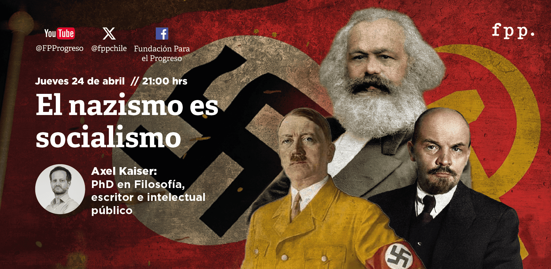 Este jueves a las 21 hrs. será el lanzamiento de la conferencia online de Axel Kaiser: El nazismo es socialismo, una charla que formó parte del curso Totalitarismo: pasado, presente, ¿y futuro? En ella, Axel escudriña y profundiza en los orígenes socialistas, la estructura filosófica y el carácter anticapitalista del nacionalsocialismo alemán.