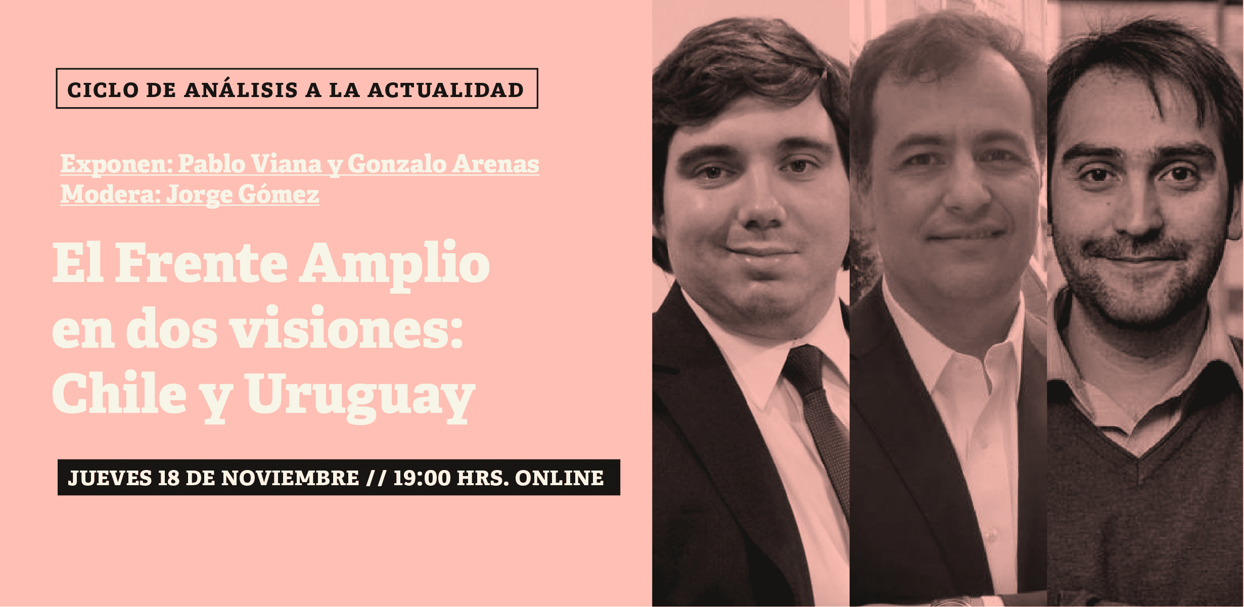 FPP te invita a una nueva sesión del Ciclo de análisis a la actualidad para reflexionar y discutir en torno a las diferencias, similitudes y contextos en que se originan, desarrollan y posicionan las organizaciones del Frente Amplio uruguayo y del Frente Amplio chileno. Muchos líderes del Frente Amplio en Chile han decidido tomar como referencia al Frente Amplio uruguayo, lo que vuelve indispensable debatir sobre los mitos y realidades respecto de esta referencia, además de los desafíos y lecciones de cara al cambio institucional en Chile.