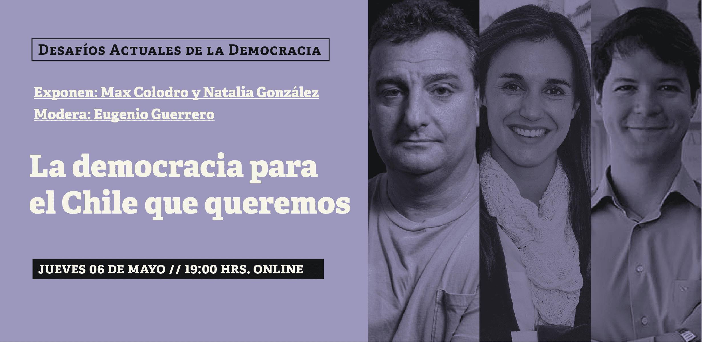 Fundación para el Progreso te invita al panel online “La Democracia para el Chile que queremos”, junto a Natalia González, abogado y Directora de Asuntos Jurídicos y Legislativos de Libertad y Desarrollo; y a Max Colodro, filósofo y Director del Magíster en Comunicación Política y Asuntos Públicos de la Universidad Adolfo Ibáñez. La instancia será moderada por Eugenio Guerrero, Director de Divulgación de la FPP ¡Inscríbete ahora! Cupos limitados.
