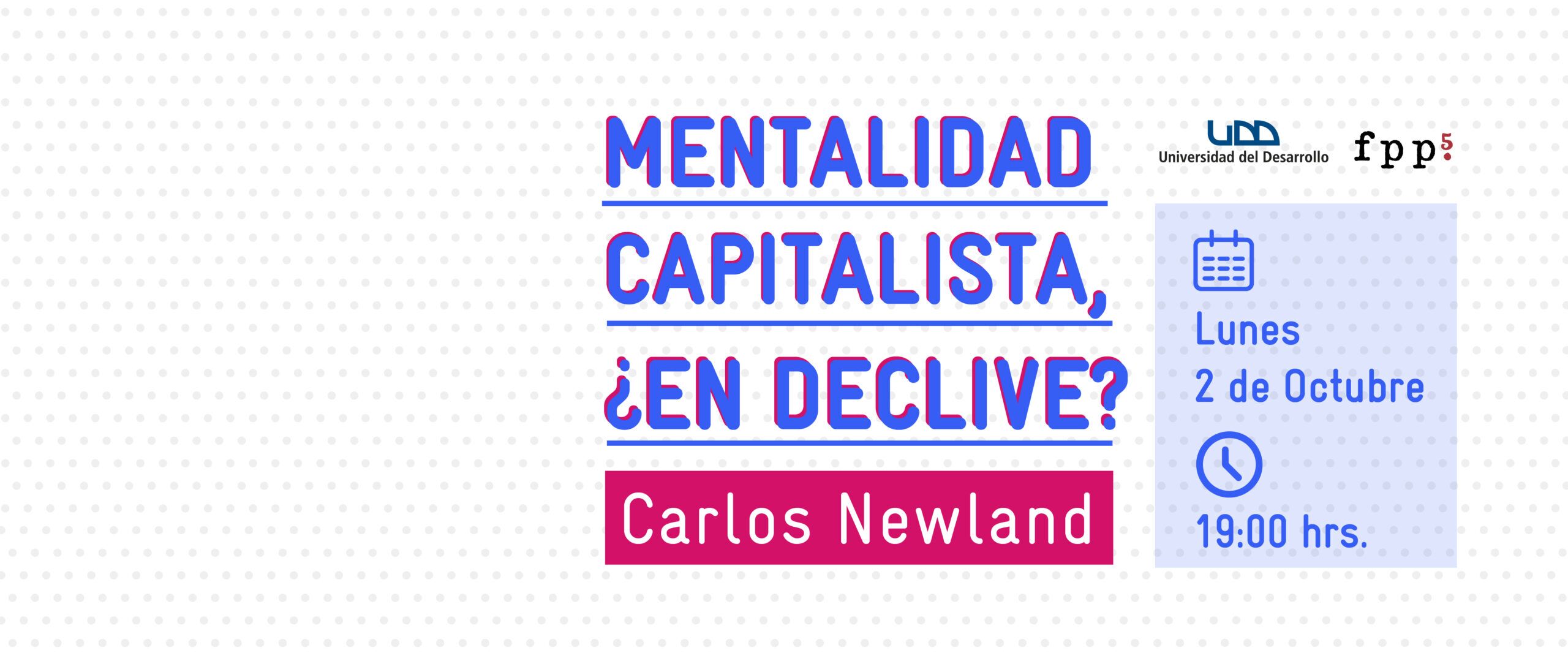 El próximo lunes 2 de octubre, el experto en historia económica Carlos Newland, conversará y reflexionará junto al Dir. Investigación FPP, Jorge Gómez, sobre el declive de los principios e ideas que han sustentando historicamente al sistema capitalista en el mundo.