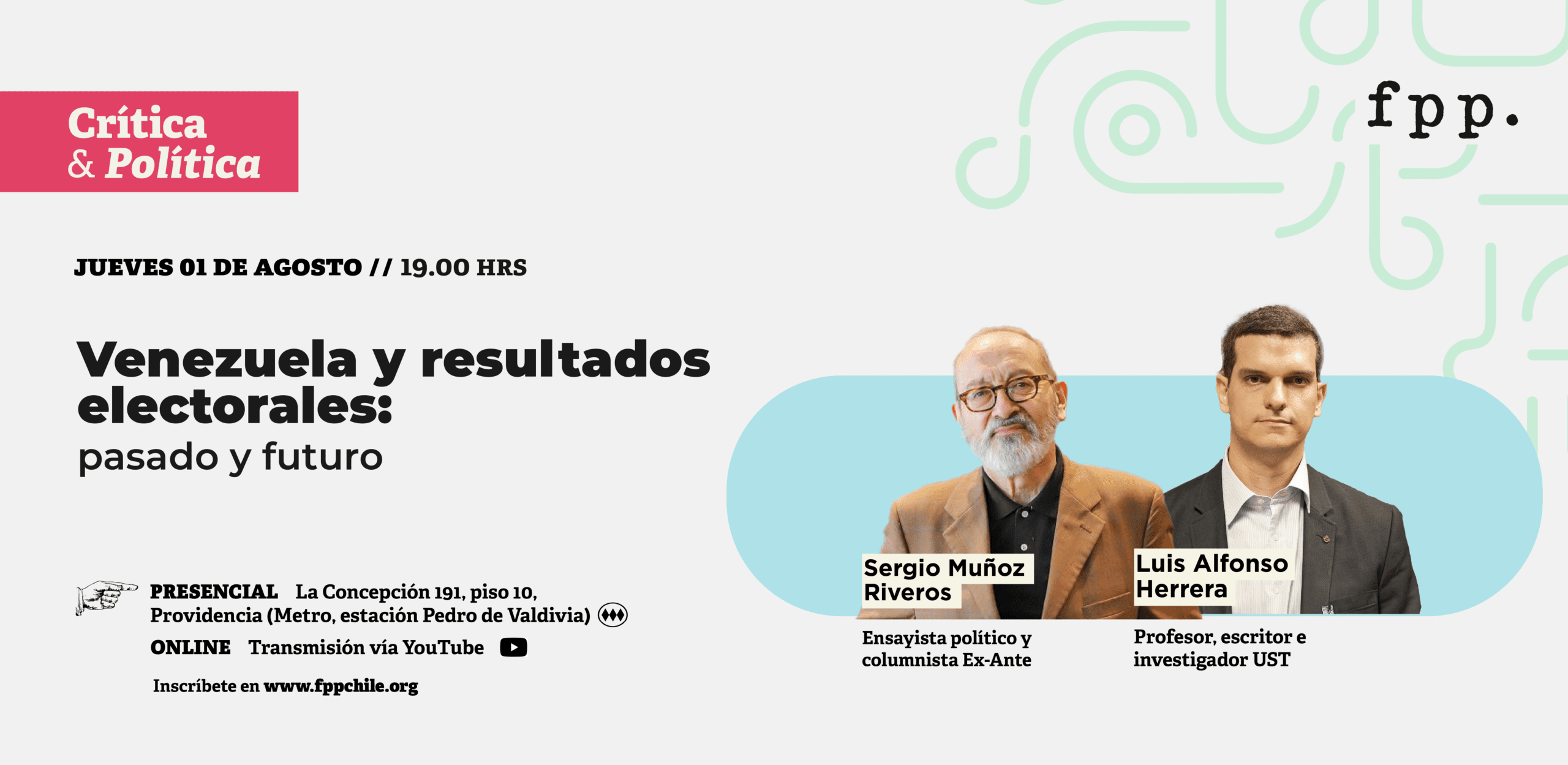 Fundación para el Progreso te invita a una nueva sesión del ciclo Crítica & Política para reflexionar y deliberar acerca de los resultados electorales de las próximas elecciones presidenciales en Venezuela. En esta ocasión, contaremos con los análisis del Sergio Muñoz Riveros, ensayista político, escritor y columnista en Ex-Ante; y Luis Alfonso Herrera, ciudadano venezolano, profesor, escritor e investigador Universidad Santo Tomás.