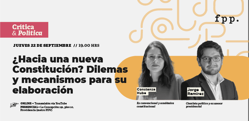 Todas estas interrogantes las conversaremos junto a Constanza Hube, ex convencional y académica constitucional, y Jorge Ramírez, cientista político y ex asesor presidencial el próximo jueves 22 de septiembre a las 19:00 horas en la oficina FPP Santiago.