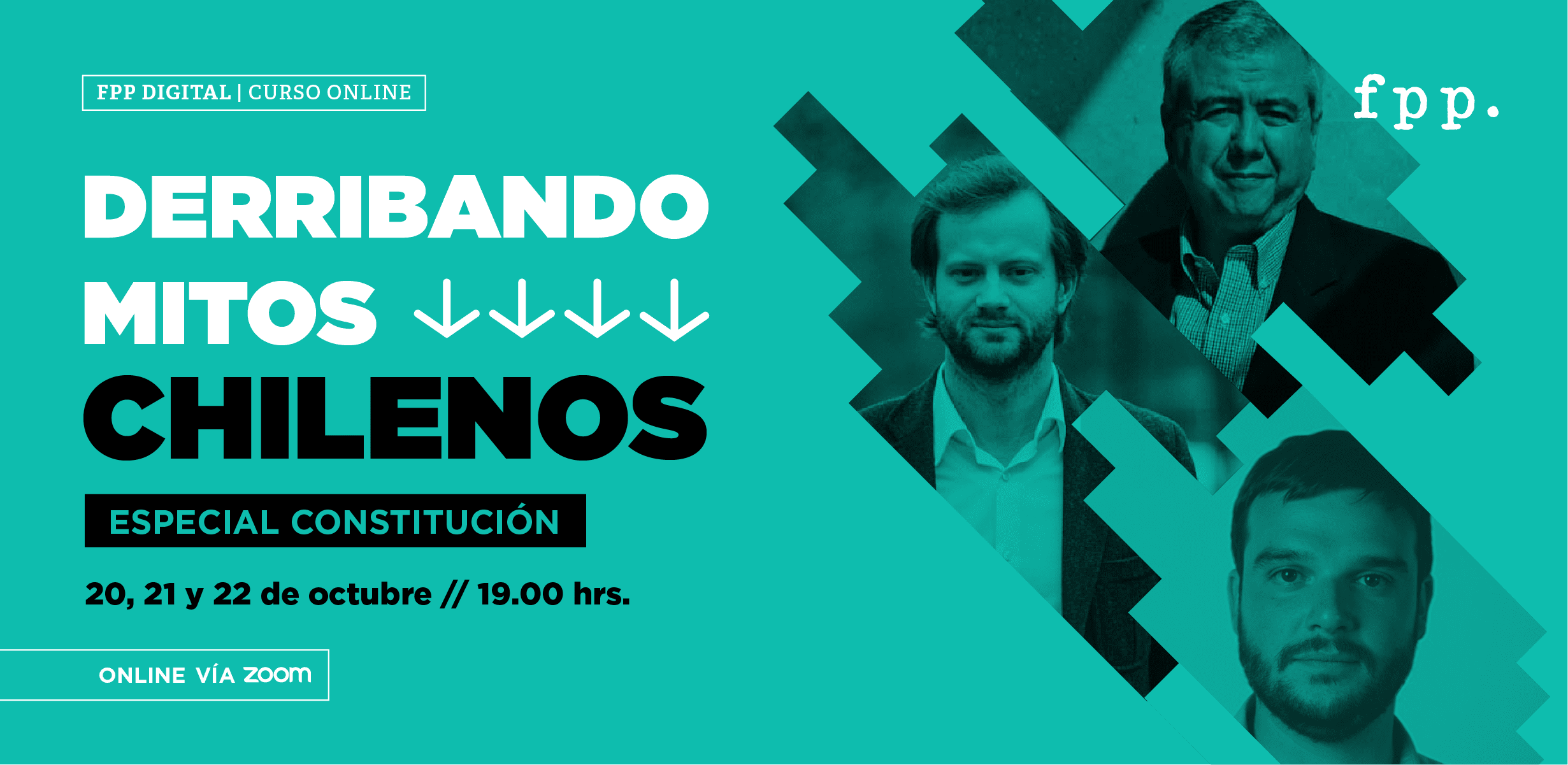 FPP te invita al ciclo formativo online "Derribando mitos chilenos", encuentro que busca informar y desmentir una serie de mitos que existen en el país en torno a distintas temáticas sobre economía, política, sociedad y cultura.