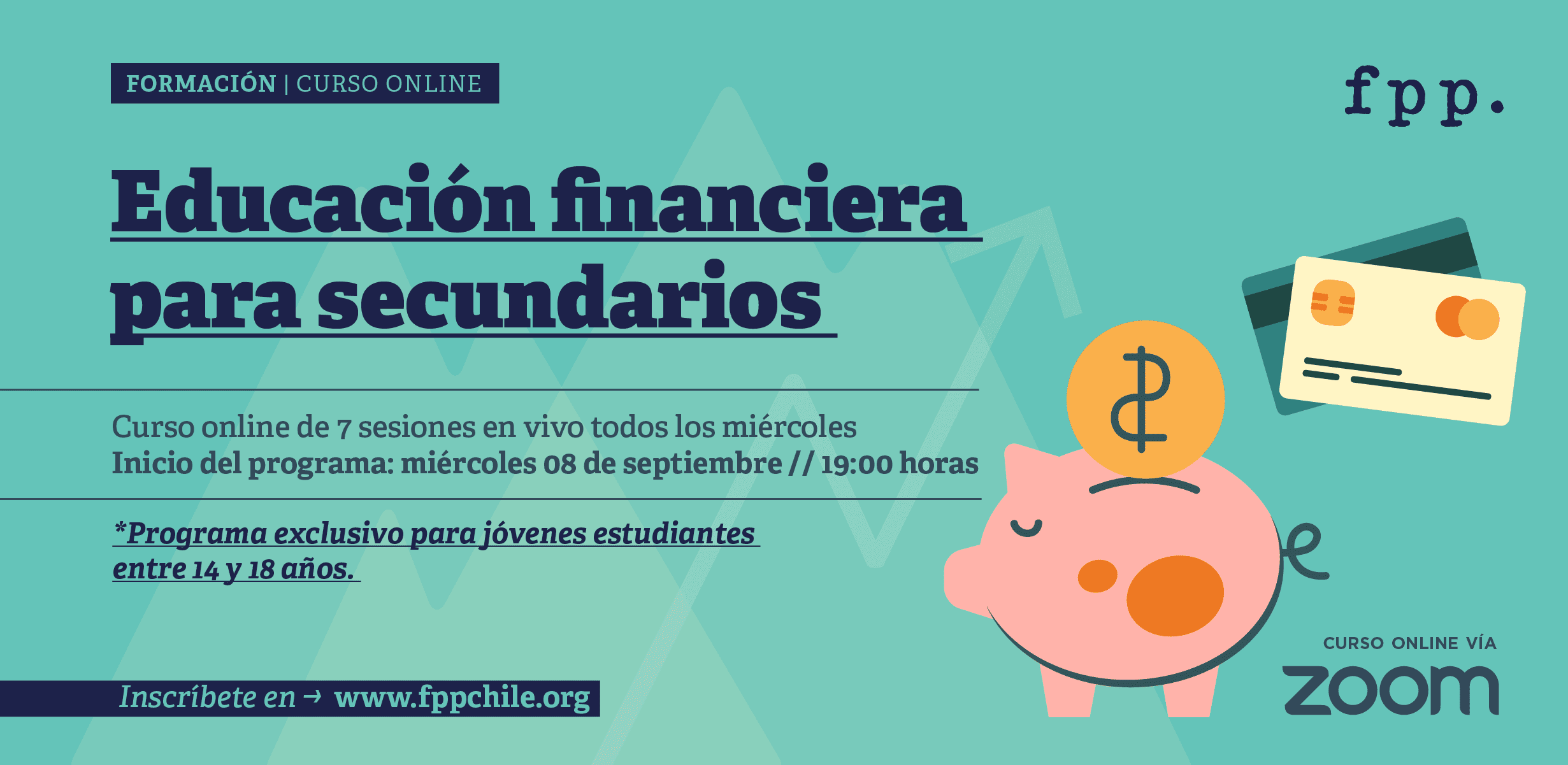 FPP te invita al curso online exclusivo para estudiantes secundarios, que te enseñará los fundamentos principales que rigen la economía y las finanzas, donde adquirirás herramientas para hacer un buen uso de tus ingresos actuales o futuros, permitiéndote realizar gestiones monetarias de manera responsable, consciente y fundamentada. ¡Inscríbete ahora! Cupos limitados.