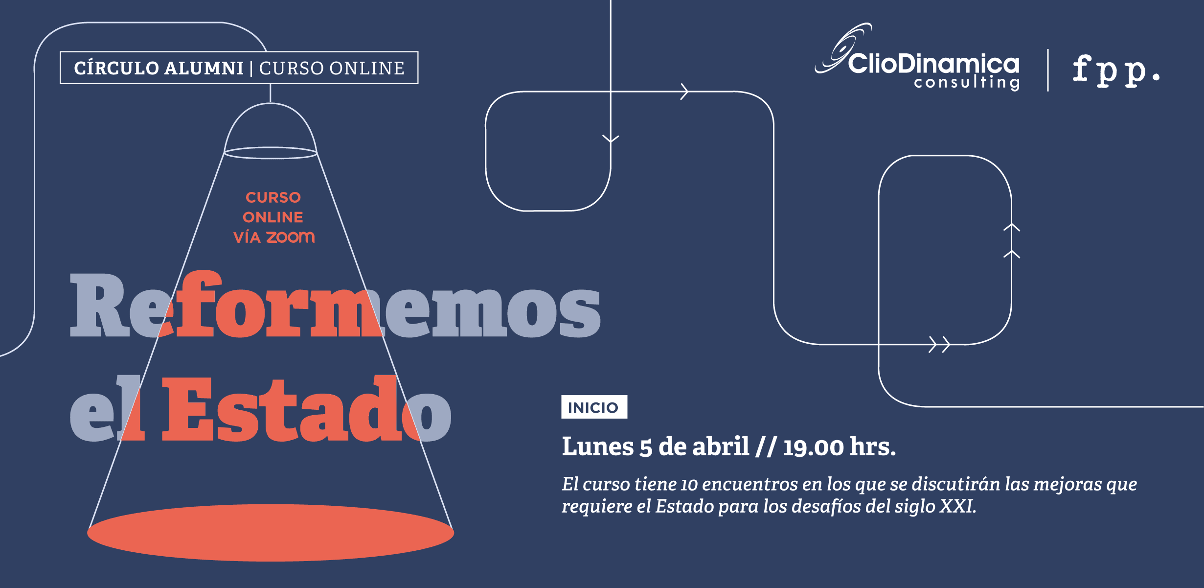 FPP te invita a participar de un curso de formación en el que abordaremos la reforma al Estado y su modernización, haciendo revisión de la situación actual y cómo lograr consensos nacionales que permitan realizar cambios sustantivos en distintas áreas.