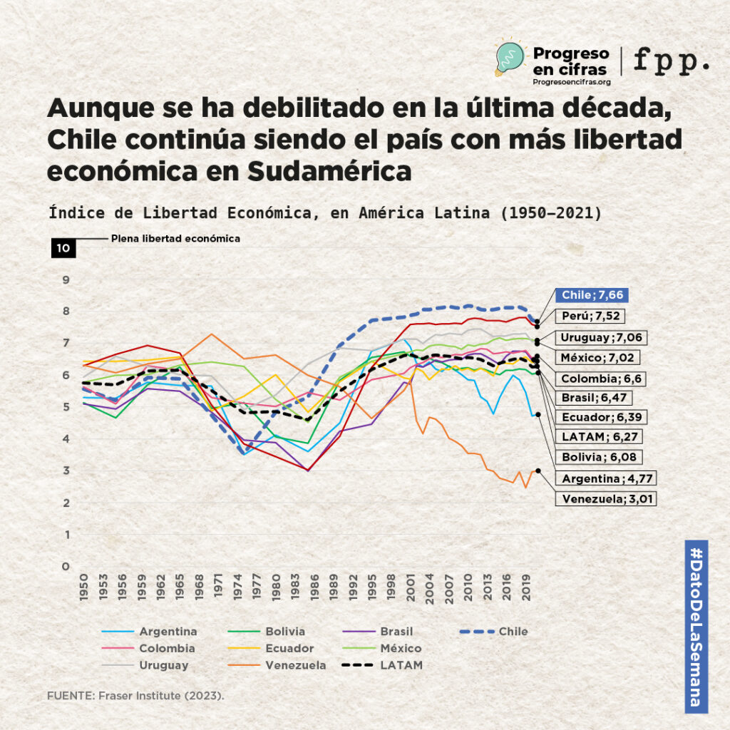 Inicio » Noticias » Dato de la semana: Aunque se ha debilitado en la última década, Chile continúa siendo el país con más libertad económica en Sudamérica