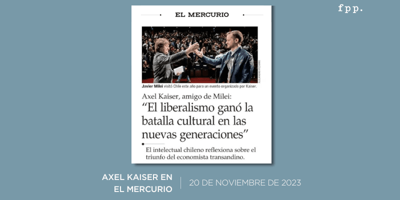 Publicada en El Mercurio, 20.11.2023 El intelectual Axel Kaiser, presidente de la Fundación para el Progreso, conoce desde hace años a Javier Milei.