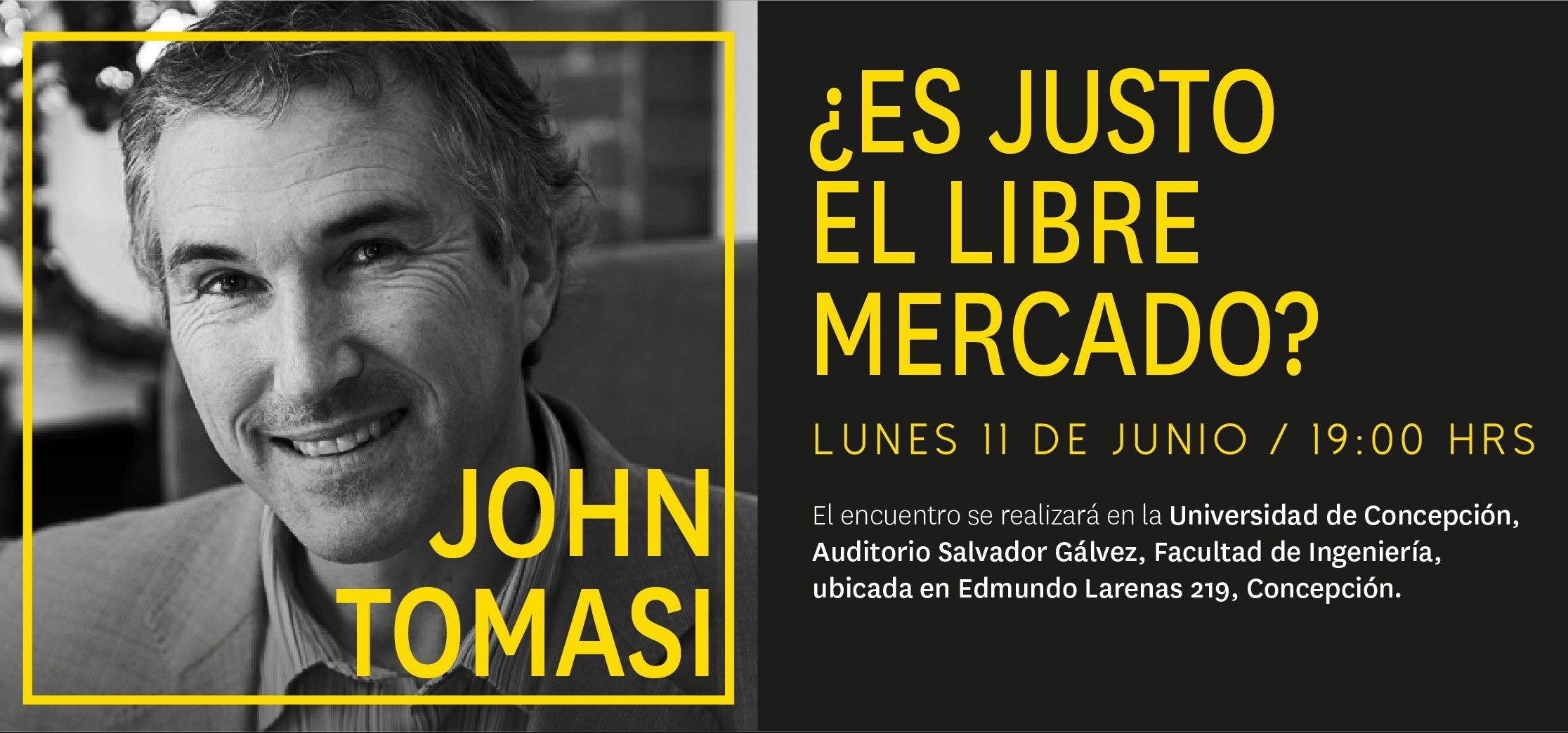 Te invitamos a formar parte de la conferencia "¿Es justo el libre mercado?" presentada por John Tomasi, este lunes 11 de junio a las 19:00 horas en la Universidad de Concepción. Tomasi es filósofo político y escritor del libro “Free Market Fairness”, donde postula que la libertad de mercados y la justicia social pueden coexistir en una misma sociedad.