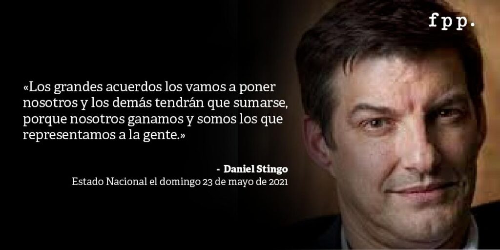 Pese a las advertencias, la crisis de representación política en el país ha hecho surgir liderazgos que buscan sacar provecho de esta, profundizando el problema al divulgar la idea de que la democracia y el poder deben ser ilimitados. Daniel Stingo, panelista de televisión y ahora convencional constituyente, ha sido uno de los principales defensores de esta manera de ver la democracia, como lo dijo en Estado Nacional, programa de TVN, el domingo 23 de mayo: «Los grandes acuerdos los vamos a poner nosotros y los demás tendrán que sumarse, porque nosotros ganamos y somos los que representamos a la gente».