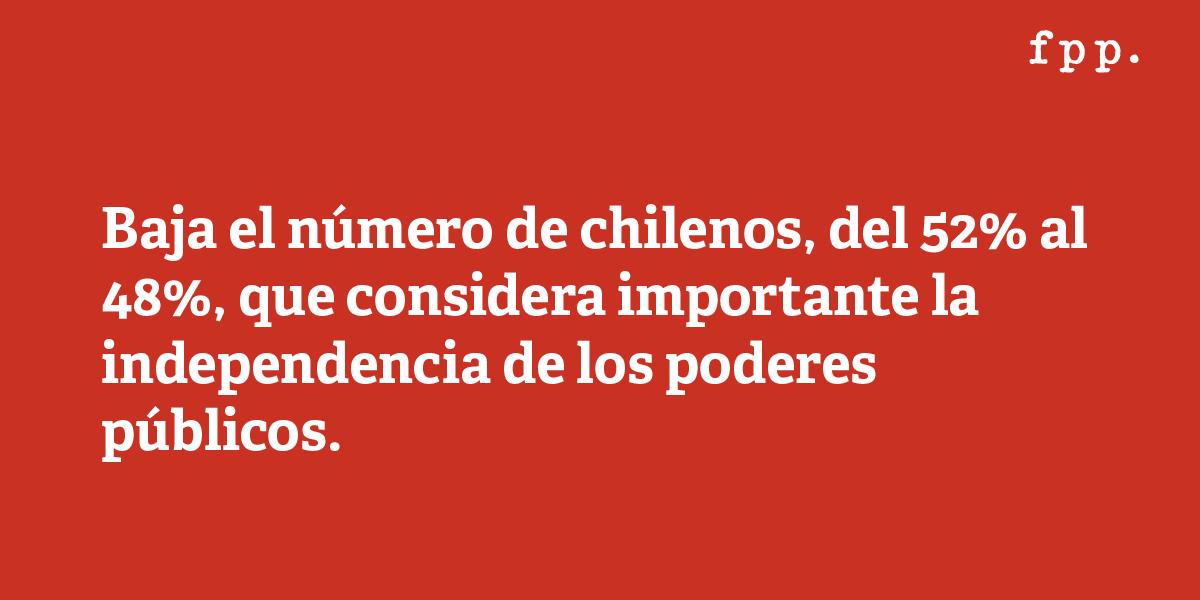 Estas posiciones encuentran apoyo mayoritario en el país: el 67% de los chilenos considera para Chile positivo o muy positivo un liderazgo que encarne los anhelos de la mayoría y que pueda corregir el sistema político, a pesar de las restricciones de los partidos e instituciones.Ecuación peligrosa, que potencia el surgimiento de regímenes populistas bajo la bandera democrática.