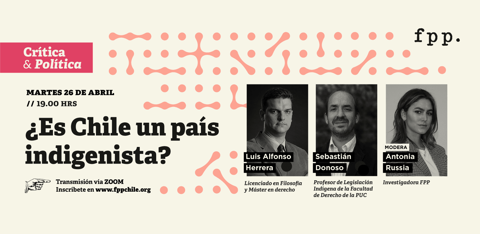 En FPP te invitamos a participar de un panel de conversación para explicar, desde un punto de vista histórico e institucional, el desarrollo político, social y económico del indigenismo en Chile, junto a destacados académicos y expertos en la materia.