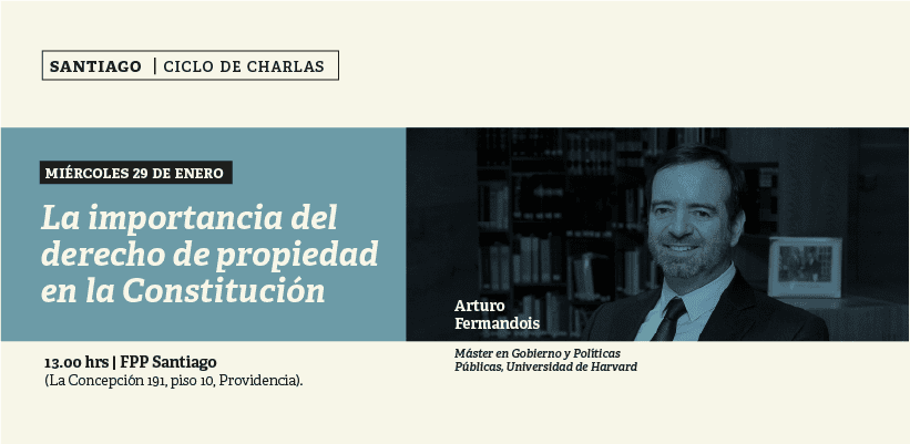 Fundación para el Progreso te invita a la conferencia impartida por el abogado, académico, político chileno y ex embajador de Chile en EE.UU, Arturo Fermandois. Quien expondrá sobre "La importancia del derecho de propiedad en Chile y su reconocimiento constitucional".