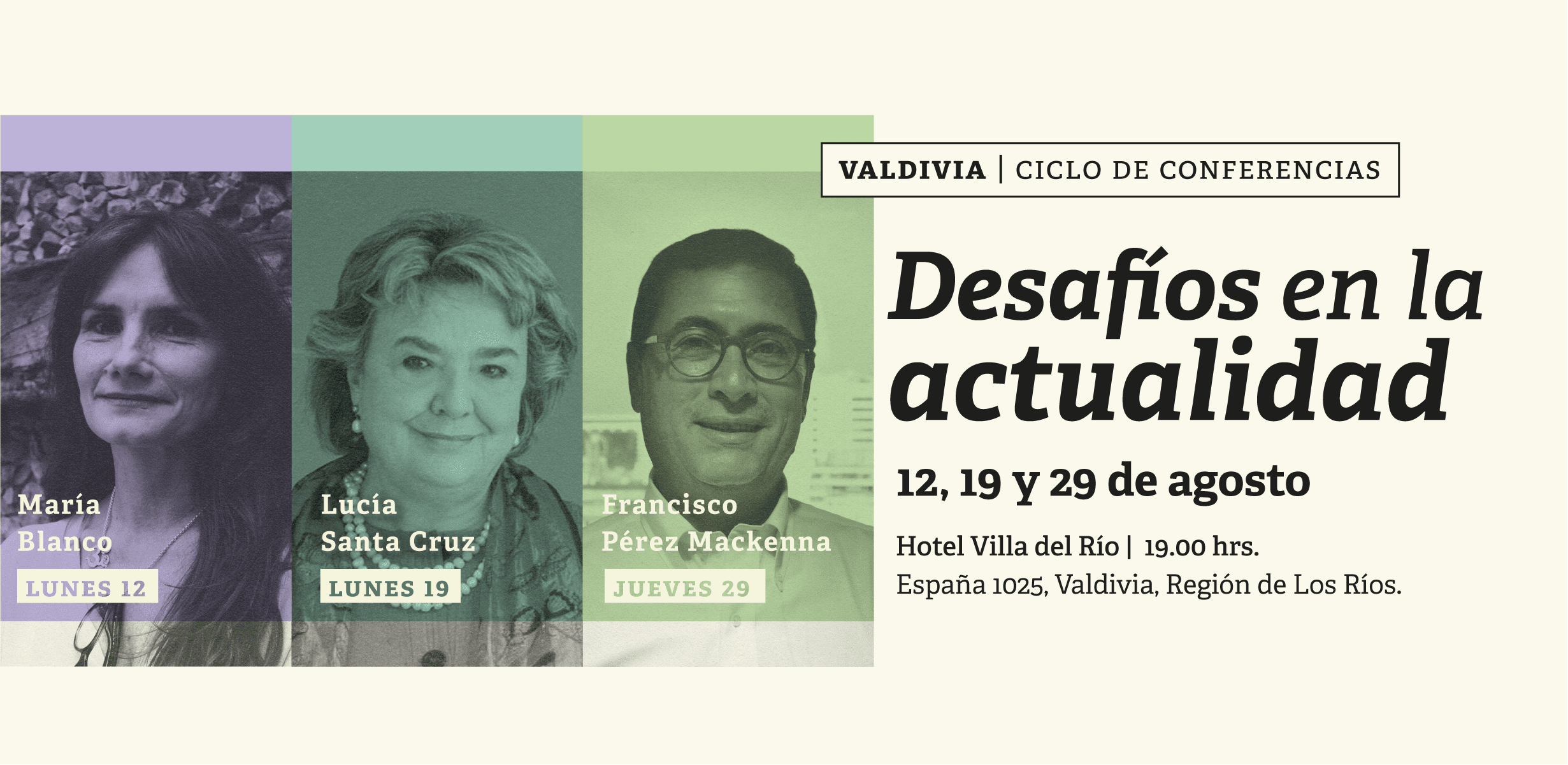 Durante el mes de agosto, FPP Valdivia realizará un Ciclo de conferencias junto a los destacados, Lucía Santa Cruz, Francisco Pérez Mackenna y María Blanco, quienes hablarán sobre los principales desafíos de la actualidad. Inscríbete ahora ¡Cupos limitados!