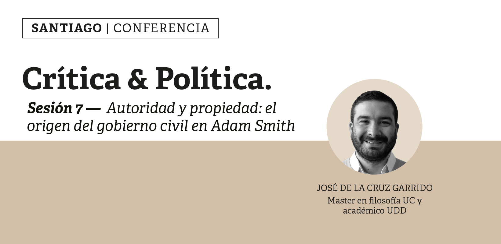 Fundación para el Progreso te invita a la séptima sesión del "Ciclo de Crítica & Política" en la que se hablará sobre el origen del gobierno civil de Adam Smith, junto al profesor de la Universidad del Desarrollo y Máster en Filosofía, José de la Cruz Garrido. Inscríbete ahora ¡Cupos limitados!