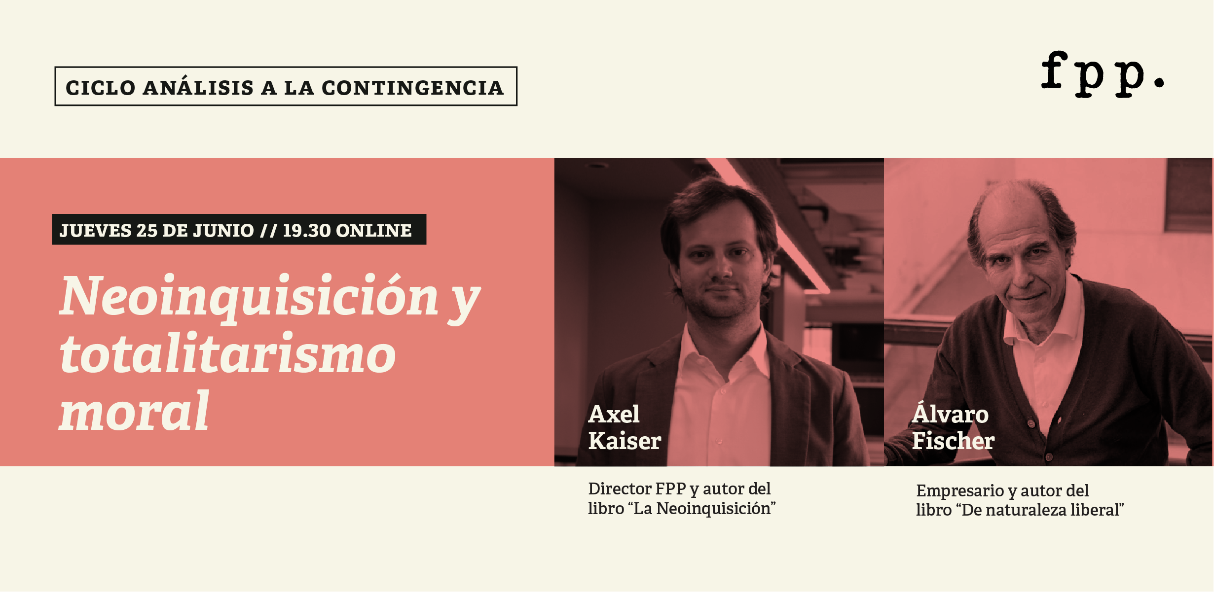 FPP te invita a reflexionar junto a Axel Kaiser y Álvaro Fischer sobre la corrección política desmesurada, la neoinquisición y el totalitarismo moral que está provocando un colapso en la esfera pública como espacio de diálogo y debate de ideas, lo que ha desencadenado verdaderas “cacerías de brujas” hacia quienes digan o piensen lo contrario a lo socialmente aceptado en la actualidad.