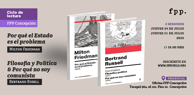 Fundación para el Progreso Concepción te invita a participar en un nuevo ciclo de lectura, donde analizaremos las grandes ideas de autores clásicos a través de la Colección Semilla, el nuevo producto editorial FPP. Una serie de libros de bolsillo que reúnen textos y ensayos clave sobre liberalismo, política y economía.