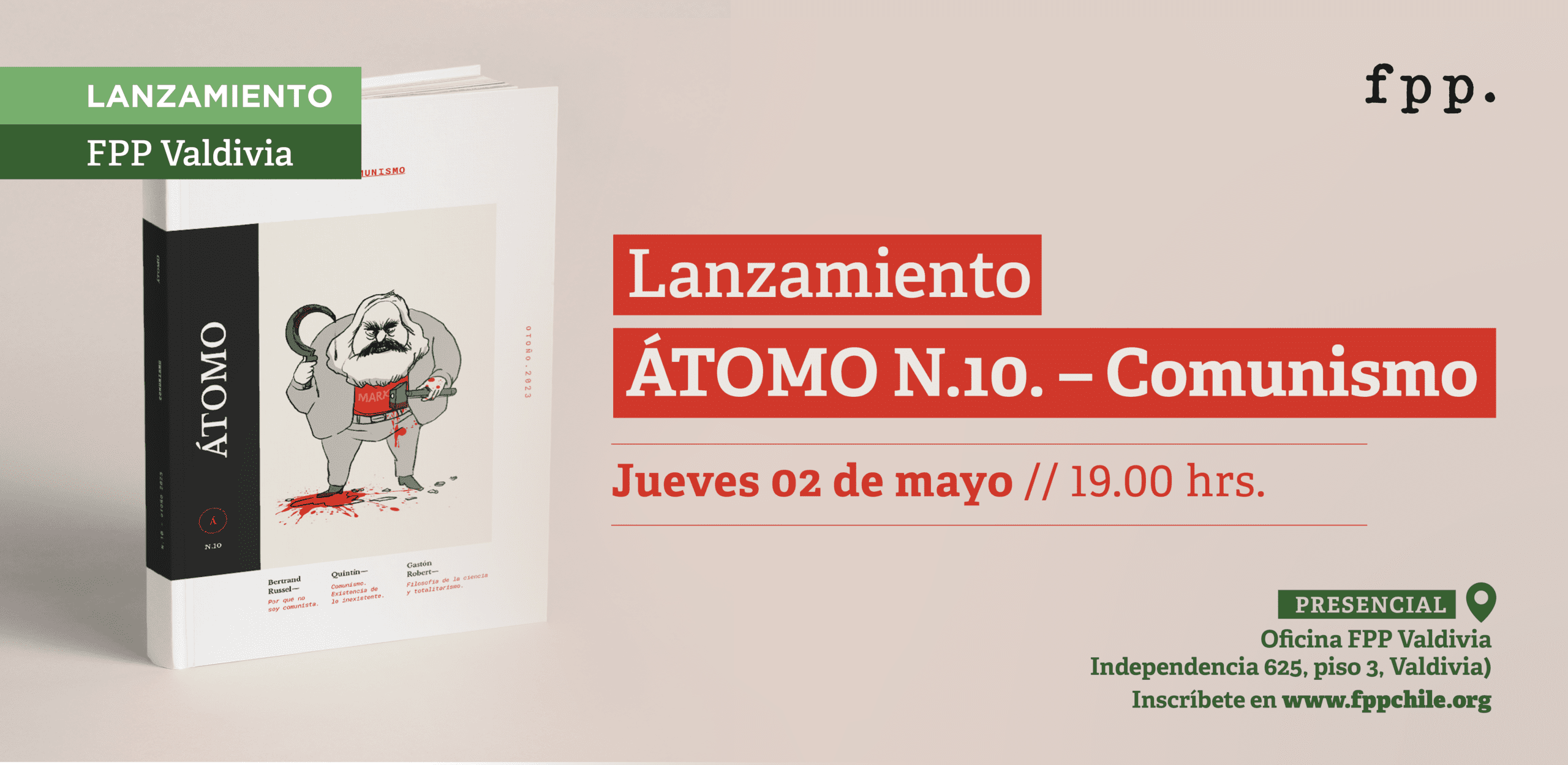 Fundación para el Progreso Valdivia te invita al lanzamiento de la revista ÁTOMO N.10. sobre comunismo. En esta edición se analizará el comunismo desde diferentes perspectivas e incluye textos de Héctor Soto, Vicente Huidobro, Bertrand Rusell, J.M Keynes.