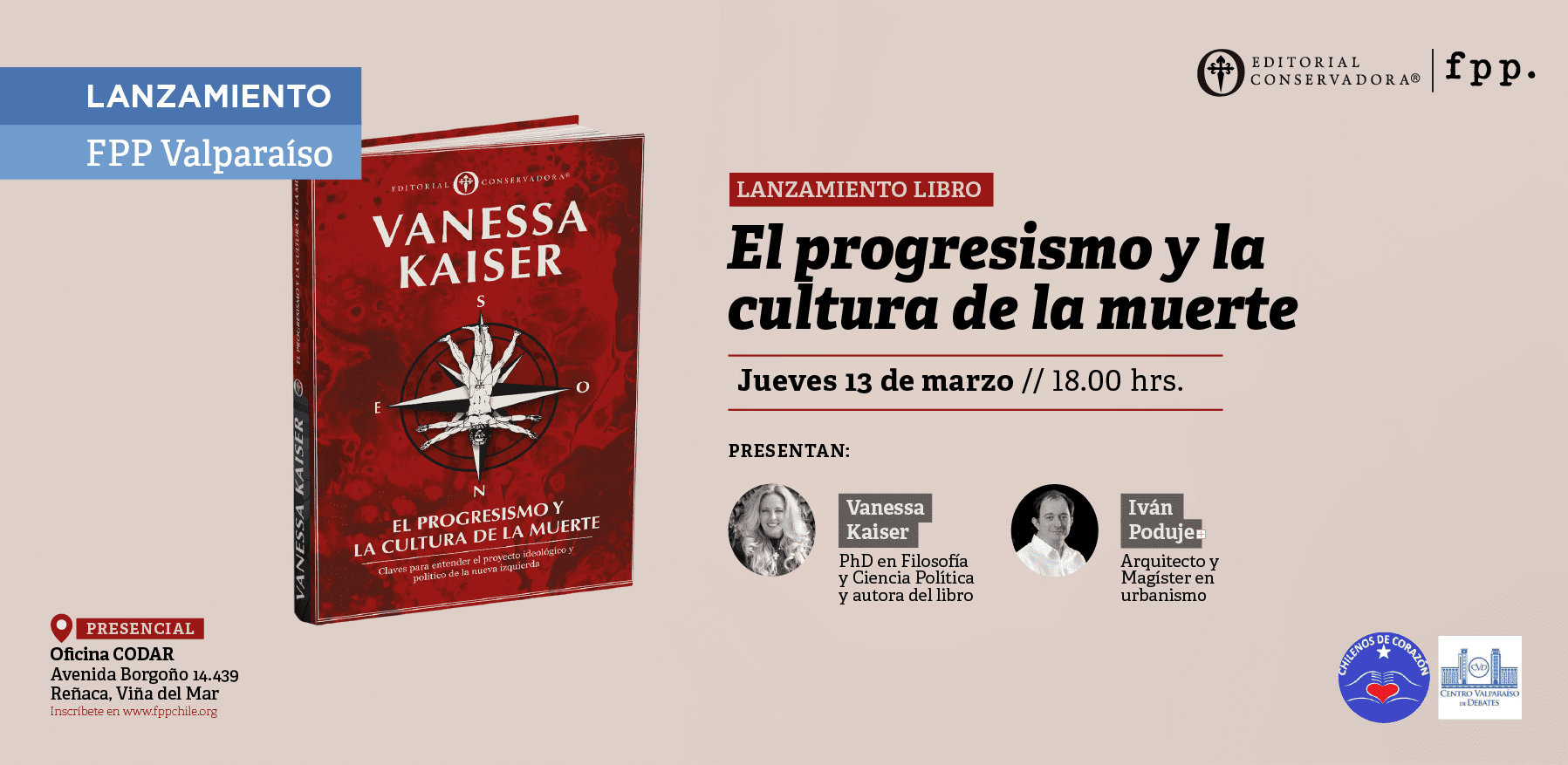 Fundación para el Progreso Valparaíso, te invita al lanzamiento del último libro de Vanessa Kaiser «El progresismo y la cultura de la muerte». En esa ocasión, contaremos con los comentarios de Iván Poduje.