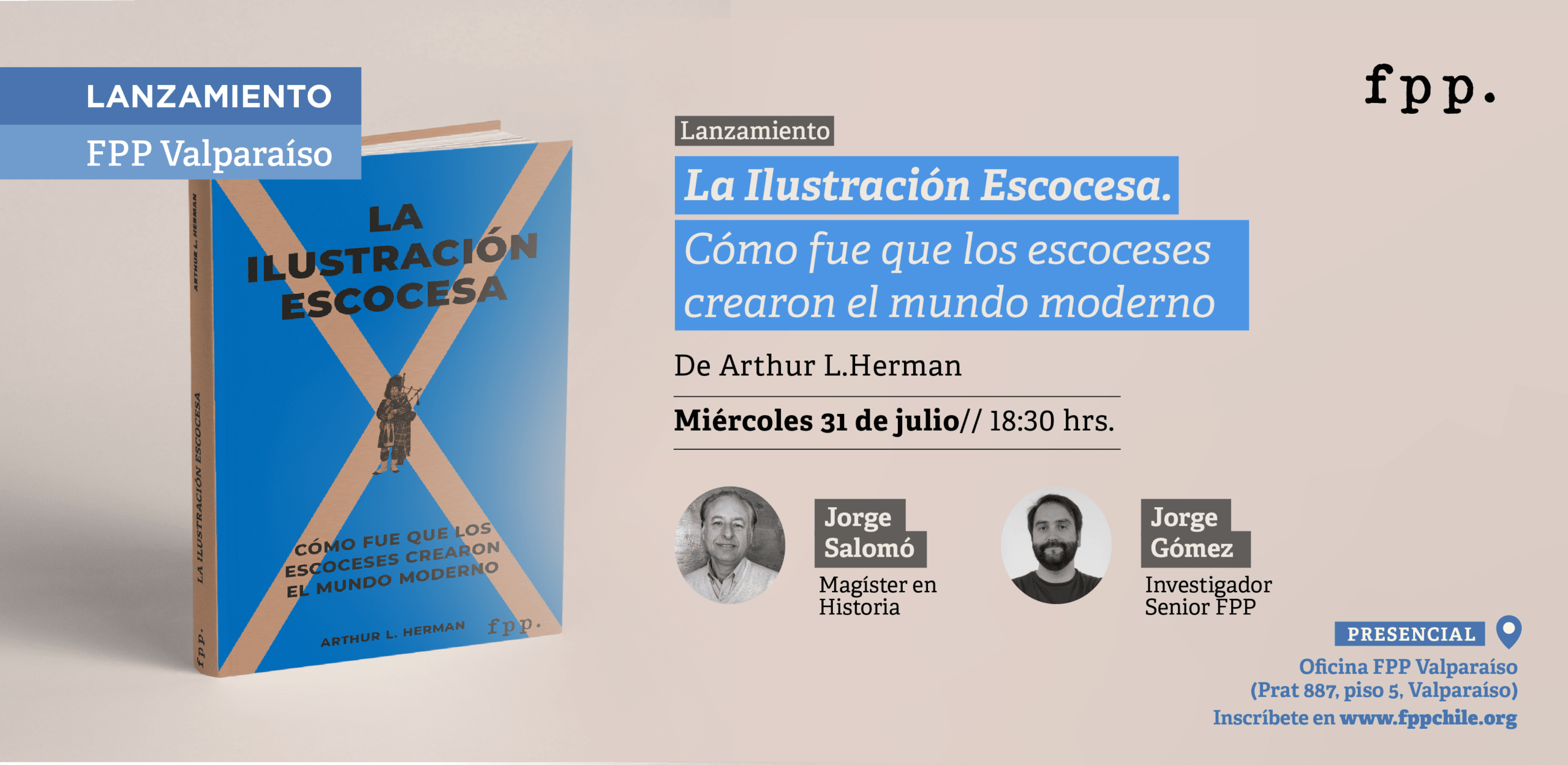 FPP Valparaíso te invita al lanzamiento del libro La Ilustración Escocesa: cómo fue que los escoceses crearon el mundo moderno, obra del destacado historiador norteamericano Arthur L. Herman.