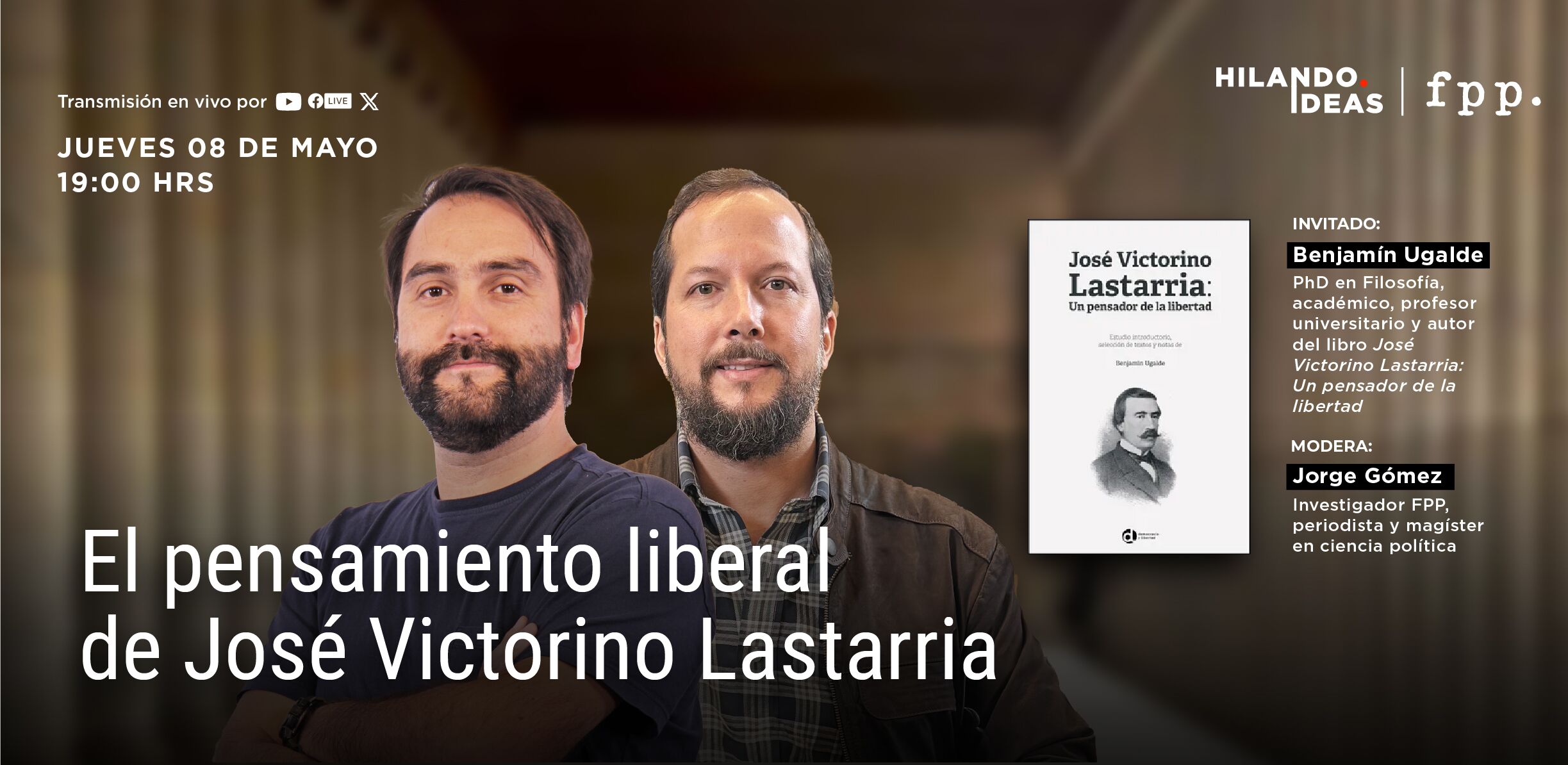 Fundación para el Progreso te invita a una nueva sesión del Hilando Ideas, en el que conversaremos con el filósofo Benjamín Ugalde acerca de uno de sus libros más recientes titulado José Victorino Lastarria: Un Pensador de la Libertad. Obra que reúne y contextualiza textos clave de Lastarria, en el que defiende la libertad individual y la igualdad ante la ley como base del orden social y político, como también del progreso. Esta obra y próxima conversación es una oportunidad para redescubrir a este influyente liberal chileno del siglo XIX. El investigador senior de la Fundación, Jorge Gómez, estará a cargo de la conversación.