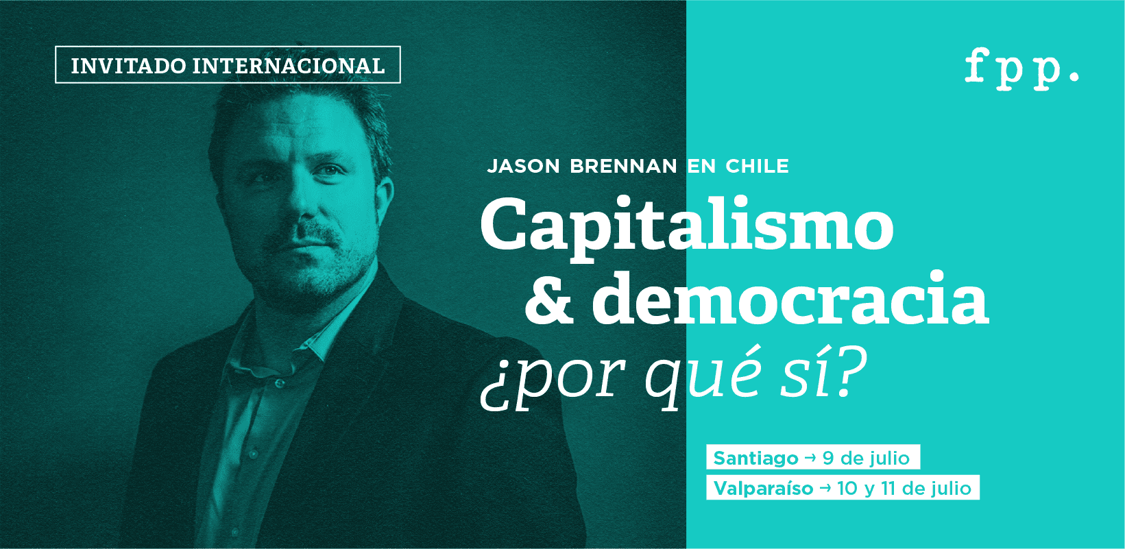 Jason Brennan (40), Doctor en Filosofía y académico de la Universidad de Georgetown, está dando que hablar en el mundo intelectual debido a sus provocadoras publicaciones académicas y divulgativas sobre la ética del mercado, el liberalismo y la democracia. Brennan vino a Chile invitado por FPP para conversar y profundizar varios de los temas más candentes de la discusión internacional. Por ejemplo, el debate intelectual sobre cómo hacer posible que la democracia subsista y crezca con legitimidad, y la situación global del liberalismo y capitalismo frente a las amenazas de los populismos en el mundo.