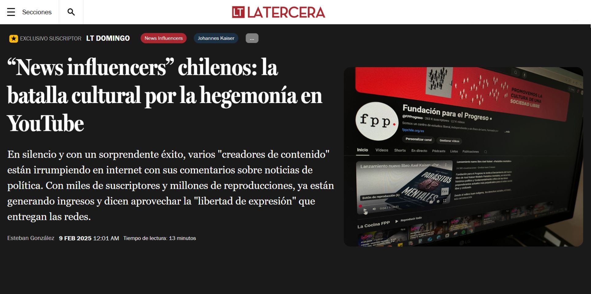 Mientras que en Chile la irrupción de personajes como el excandidato presidencial Franco Parisi, o el actual diputado y carta presidencial Johannes Kaiser, con su canal «El Nacional Libertario», parecen ser sólo el inicio de esta tendencia.