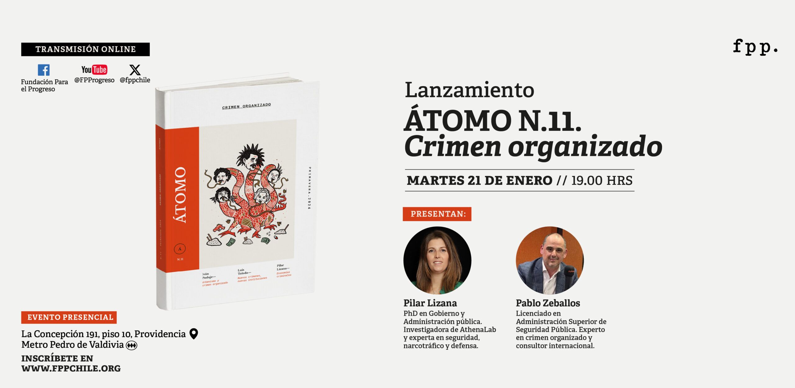 Fundación para el Progreso te invita al lanzamiento del nuevo número de la revista ÁTOMO editada por FPP, enfocada en el tratamiento del crimen organizado como realidad y fenómeno.