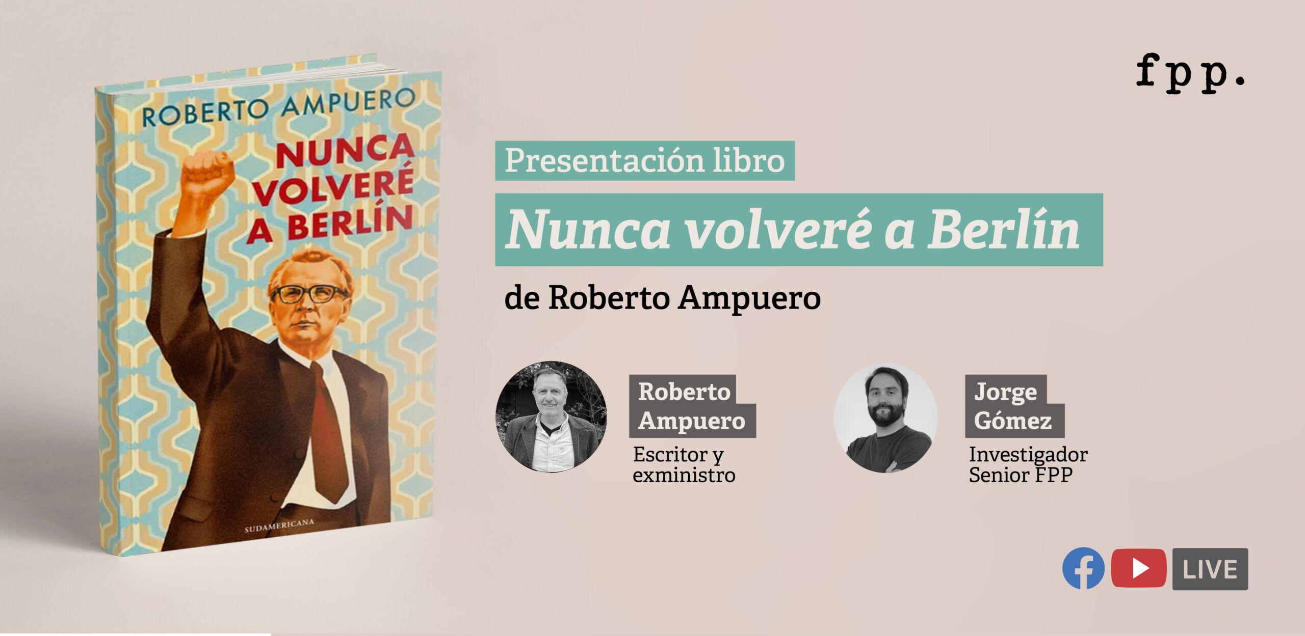 Fundación para el Progreso te invita a la presentación de la nueva novela del escritor, exministro y exembajador, Roberto Ampuero, titulada Nunca volveré a Berlín.