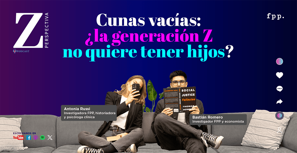 Fundación para el Progreso te invita a ver y escuchar el segundo capítulo de Perspectiva Z (PZ), nuevo podcast que una vez al mes, analizará temas que aquejan a las nuevas generaciones desde la mirada de dos jóvenes FPP, que pertenecen a la generación Z: Antonia Russi, historiadora y psicóloga clínica, y Bastián Romero, economista.