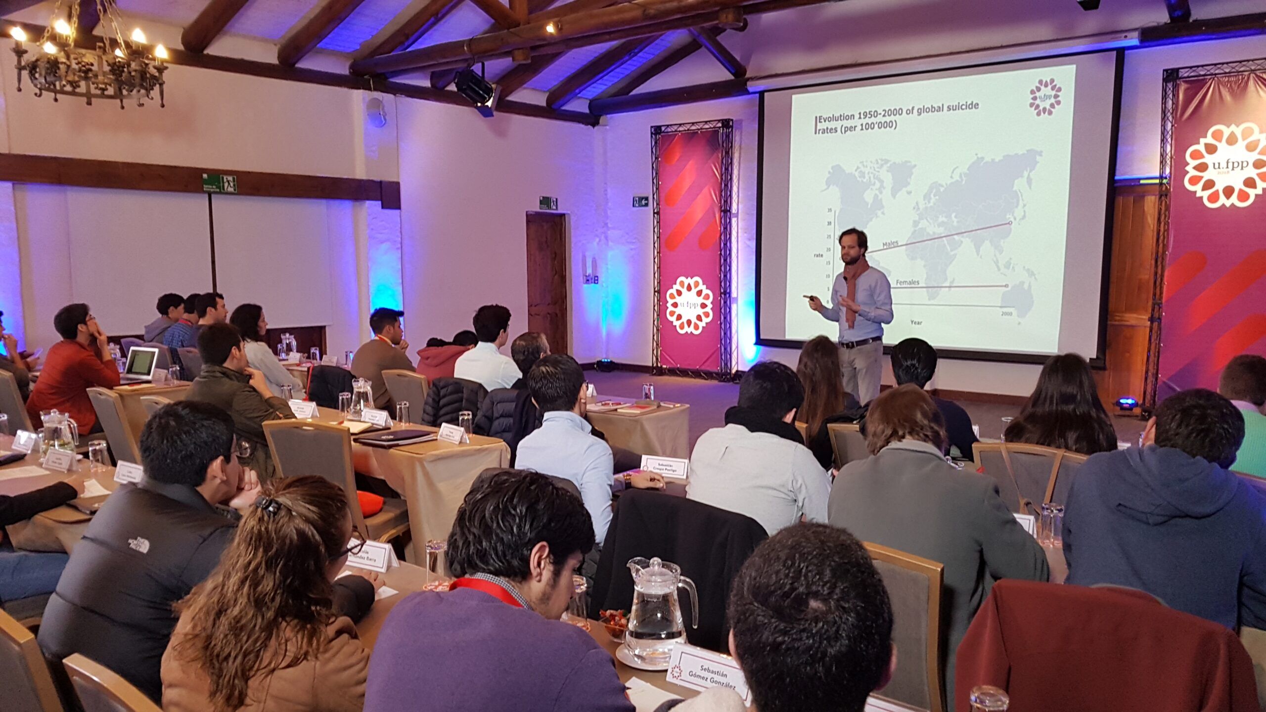 La primera jornada de la U.FPP 2018 inició con la reproducción de la película "En busca de la felicidad", y posteriormente, Axel Kaiser, Director Ejecutivo FPP, reflexionó junto a los alumnos sobre la relación entre el progreso, la autosuperación y la búsqueda de la felicidad.