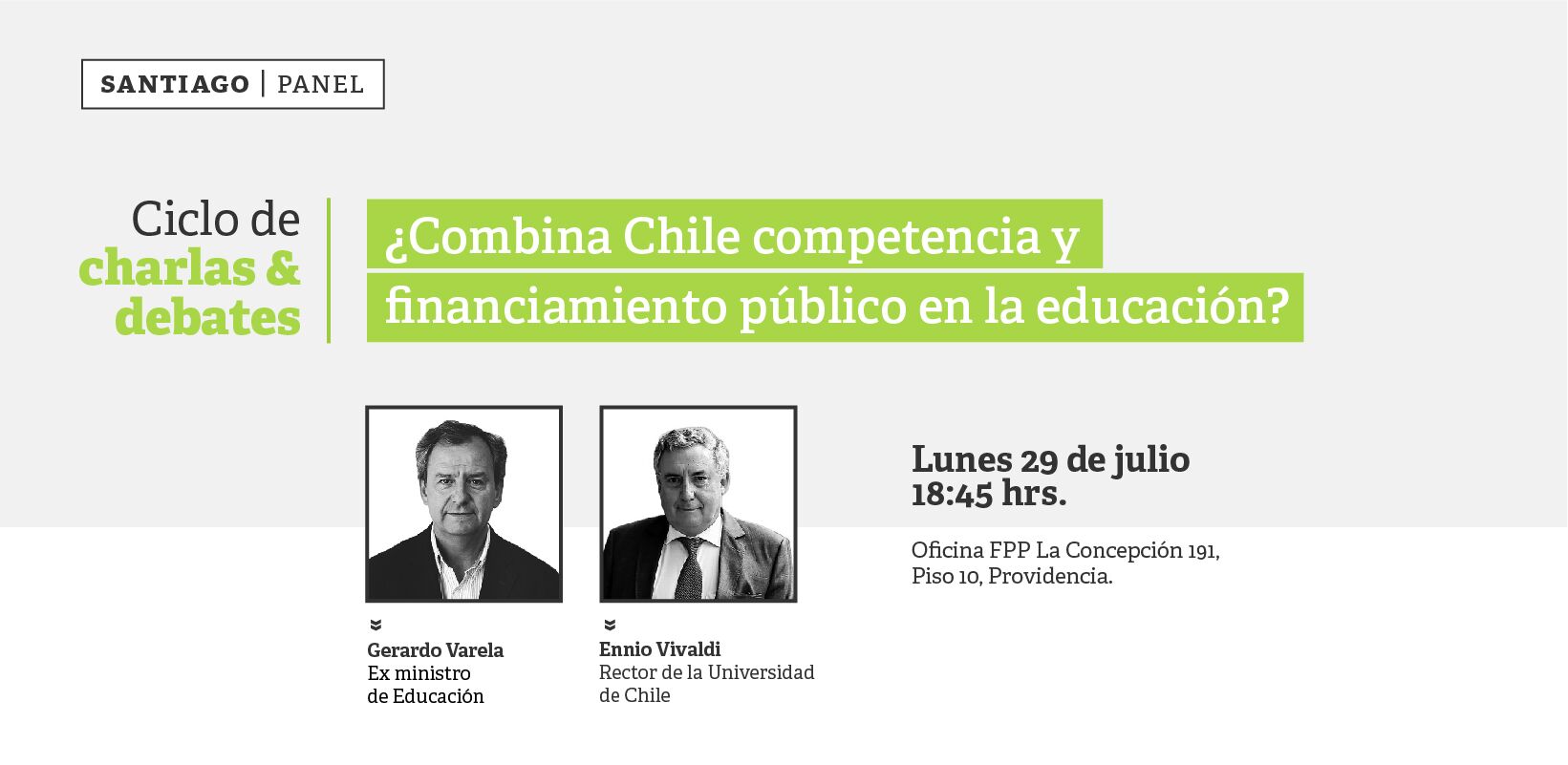¿Es posible maximizar la inscripción mediante financiamiento público y promover la eficiencia a través de competencia a la misma vez? FPP te invita a conversar sobre este interesante tema junto a Ennio Vivaldi, Rector de la Universidad de Chile y Gerardo Varela, Ex Ministro de Educación. Inscríbete ahora ¡Cupos limitados!