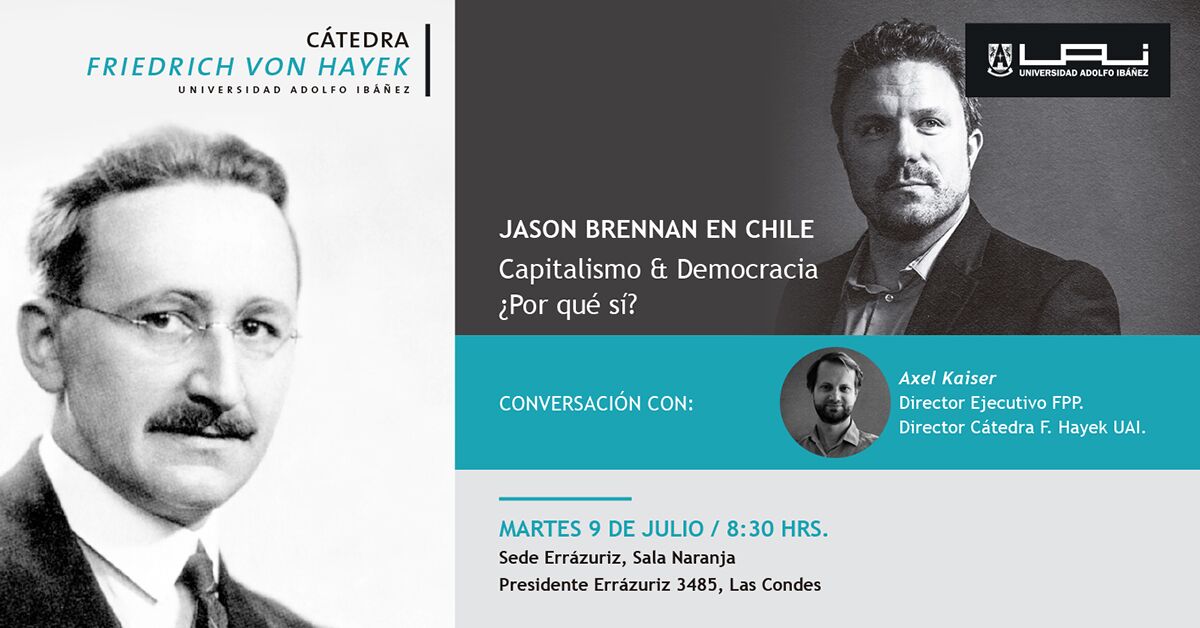 El destacado y provocador intelectual norteamericano Jason Brennan se presentará junto a Axel Kaiser, Director Ejecutivo Fpp el próximo martes 9 de julio a las 8:30 horas la Universidad Adolfo Ibañez (UAI), para conversar sobre los desafíos de las democracias liberales frente al auge de los populismos y el avance institucional del capitalismo para la superación de la pobreza y el crecimiento. Inscríbete ahora. ¡Cupos limitados!