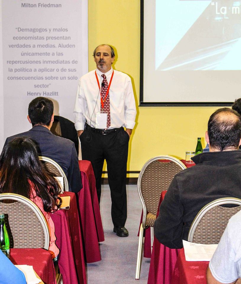 Luego fue el turno del profesor y doctor en economía, Walter Castro, quien habló de la moralidad del capitalismo. Dijo estar convencido de que el sistema capitalista es el que ha permitido que la humanidad progrese a grandes pasos, sin embargo, se le considera culpable de muchos de los males de la humanidad.