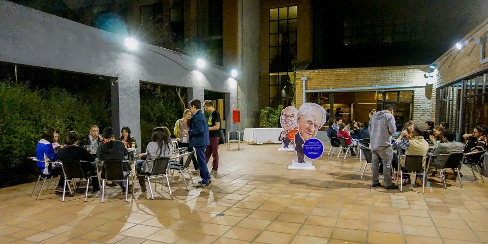 Después de la cena, en un auditorio lleno, Juan Carlos Hidalgo dio una interesante charla sobre el fracaso de la guerra contra las drogas. Su exposición fue precedida por preguntas de los estudiantes, quienes aportaron a la discusión con las experiencias de sus países.