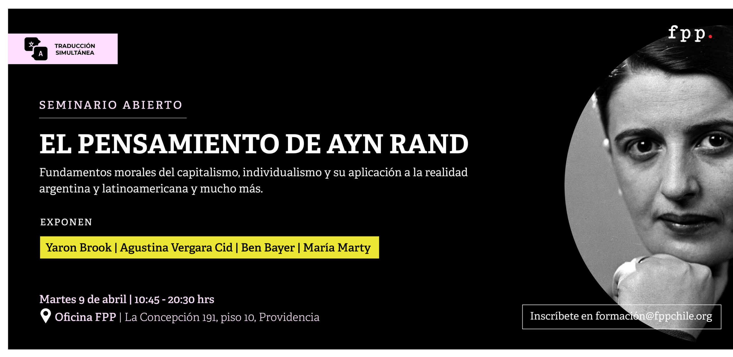 Fundación para el Progreso te invita a un seminario exclusivo sobre el pensamiento de Ayn Rand. En esta ocasión, conversaremos sobre los fundamentos morales del capitalismo, el individualismo y su aplicación a la realidad argentina y latinoamericana y mucho más.