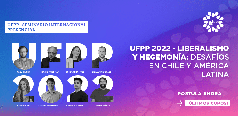 El liberalismo y la hegemonía: Los desafíos en Chile y América Latina, será el tema central de la edición 2022 de la Universidad de la Fundación para el Progreso. Seminario internacional que convoca a jóvenes líderes de 18 a 25 años de todo Chile y América Latina para analizar y discutir los principales desafíos que enfrentan la libertad, la democracia y el progreso en el siglo XXI.