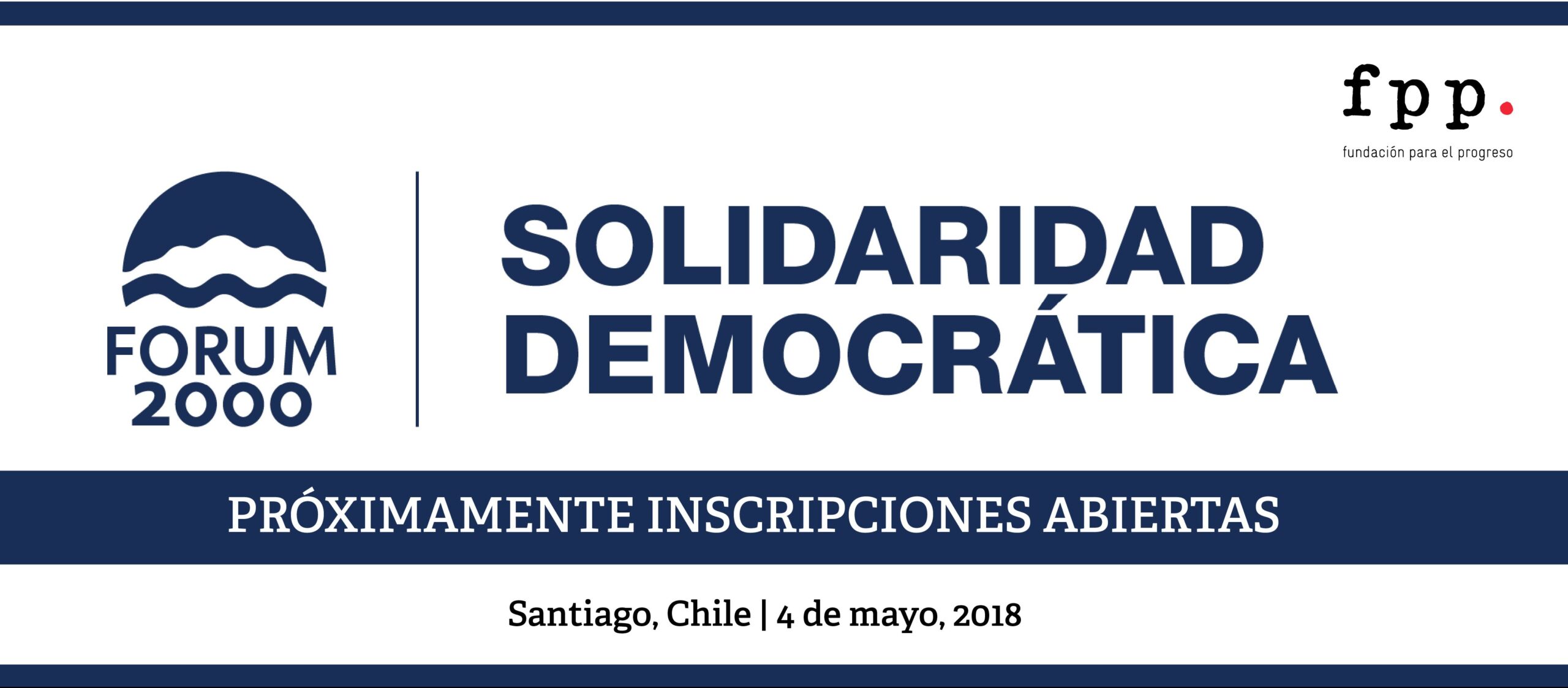La Fundación para el Progreso organizará en conjunto con la Fundación Forum 2000, organismo con sede en Praga y constituida por el ex-Presidente de la República Checa Václav Havel, la tercera edición del evento de “Solidaridad Democrática en América Latina”. Este encuentro tendrá lugar el 4 de mayo de 2018 en Santiago de Chile. Por medio de charlas y conferencias busca generar una reflexión crítica sobre los desafíos que enfrenta la democracia en la región.