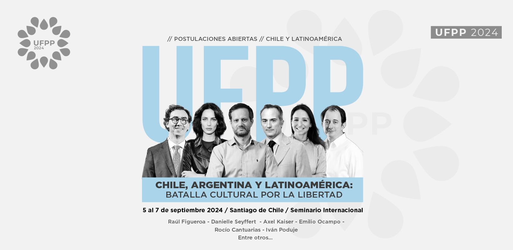 La UFPP 2024 se desarrollará entre el 05 y el 07 de septiembre, en Santiago de Chile. Los paneles tratarán principalmente los desafíos políticos, sociales, económicos y culturales que enfrenta Chile, Argentina y nuestra región. Trataremos temas que van desde reflexiones sobre el liberalismo, la cultura política, la hegemonía y los conflictos en torno al identitarismo y el multiculturalismo, hasta el fenómeno económico-político argentino, el papel de la seguridad, la educación y las pensiones en una sociedad libre y el rol de las criptomonedas en la economía global.